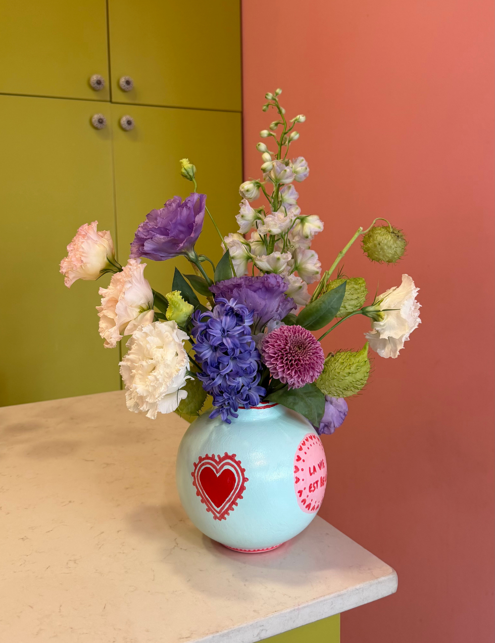 Her buket, o haftanın ruhuna ve gelen çiçeklerin enerjisine göre tasarlanır, hiçbir aranjman diğeriyle birebir aynı değildir.